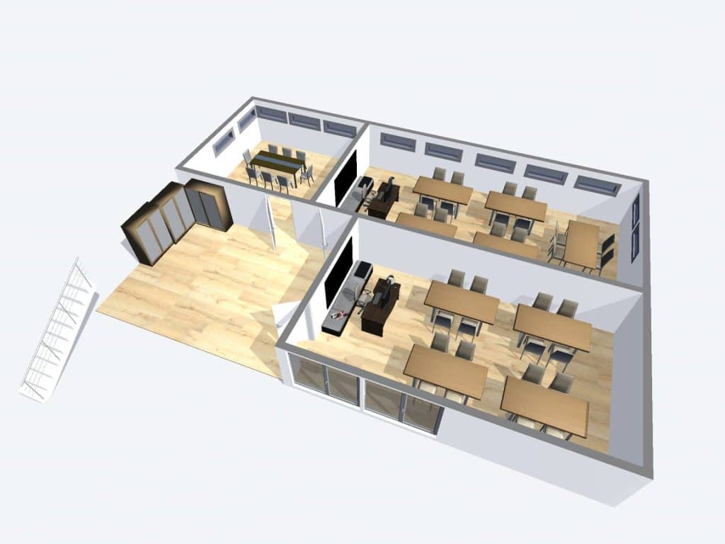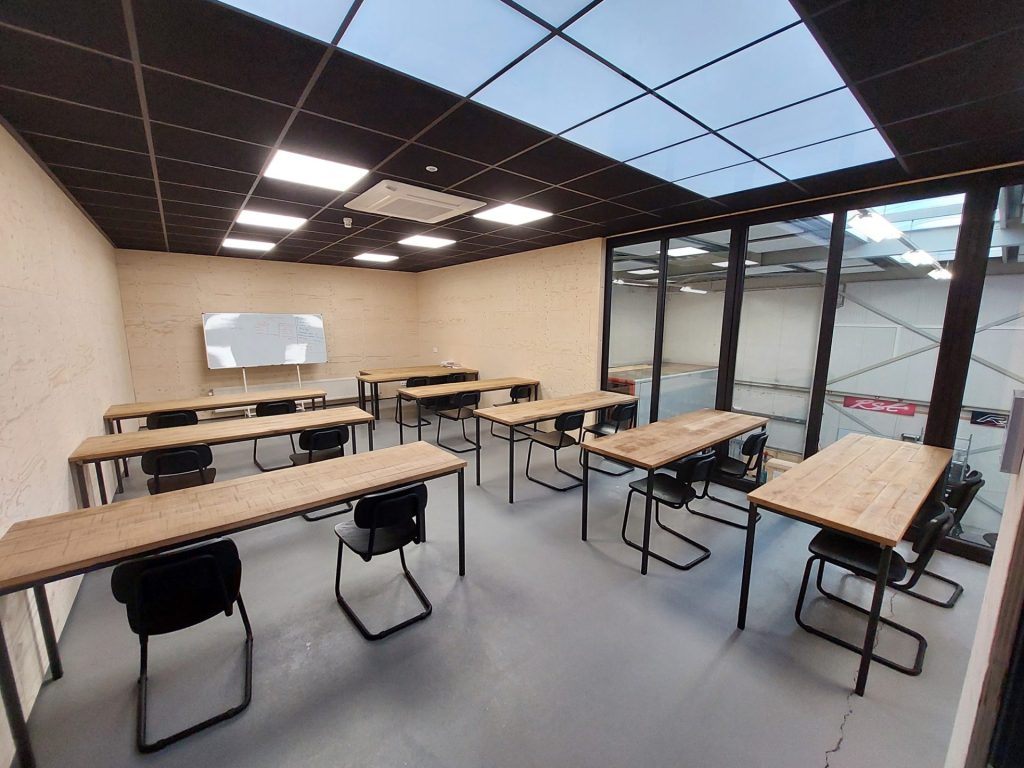 Dinkla Verkeersopleidingen in Sneek heeft sinds 2023 hun hoofdkantoor waarin ze alle activiteiten kunnen bundelen. Hierin was de behoefte om op korte termijn het pand geschikt te maken voor de bedrijfsvoering. Hierin ging het om kantoor, kantine, toiletgroep en scholingsruimtes welke gerealiseerd zijn.